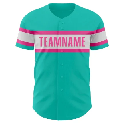 Custom Aqua White-Pink Authentic Baseball Jersey