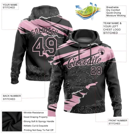 Custom Stitched Black Light Pink 3D Pattern Design Torn Paper Style Sports Pullover Sweatshirt Hoodie