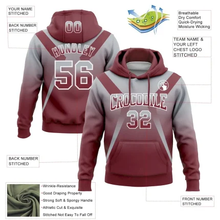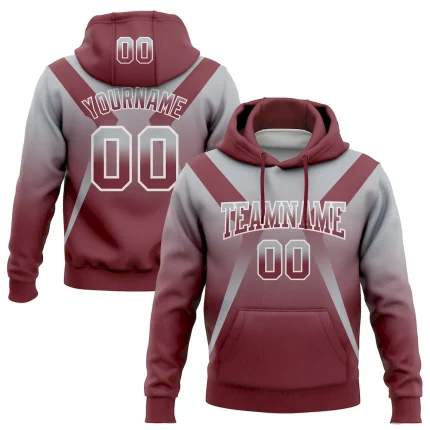 Custom Stitched Gray Burgundy-White Fade Fashion Arrow Sports Pullover Sweatshirt Hoodie