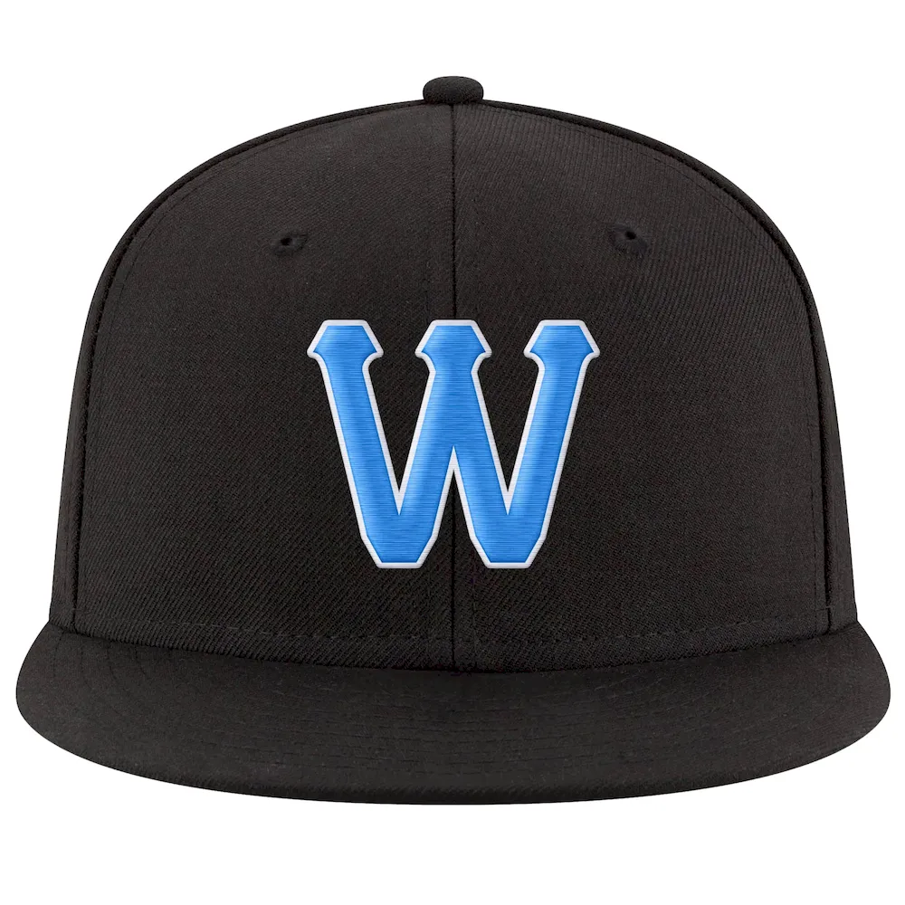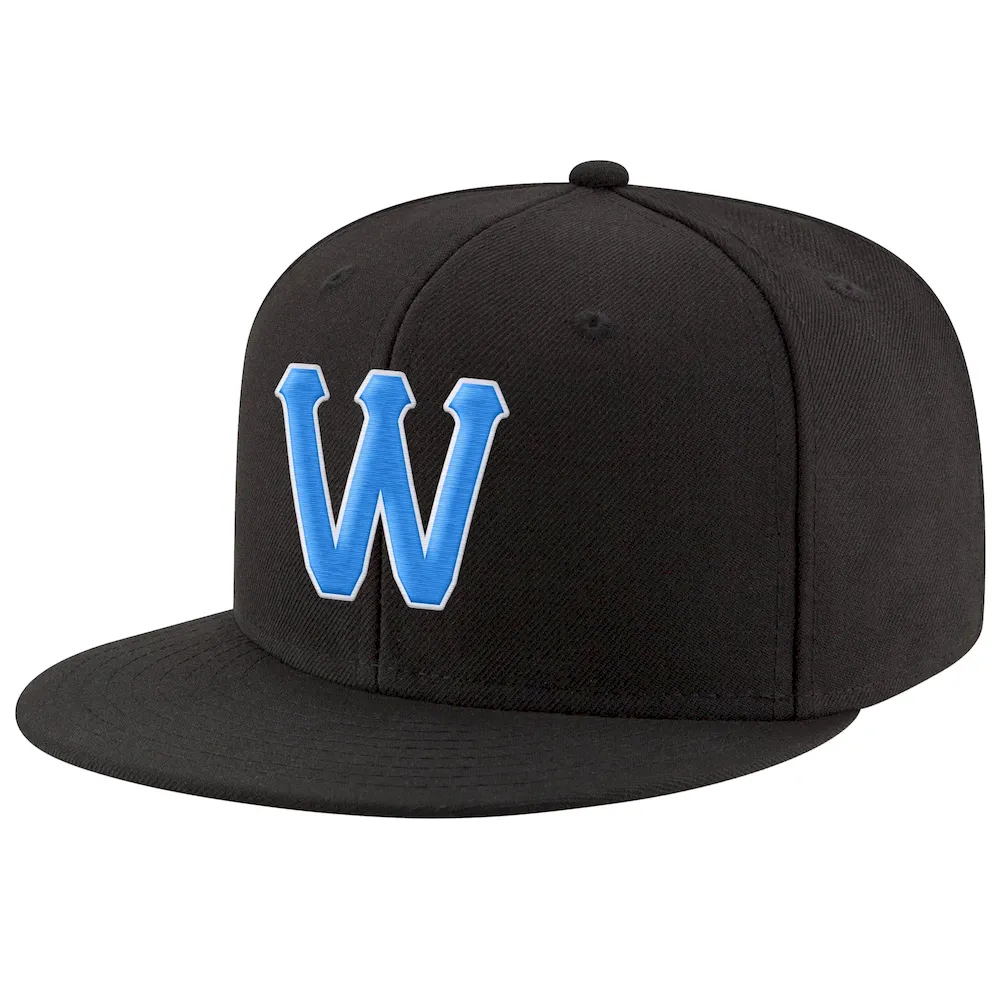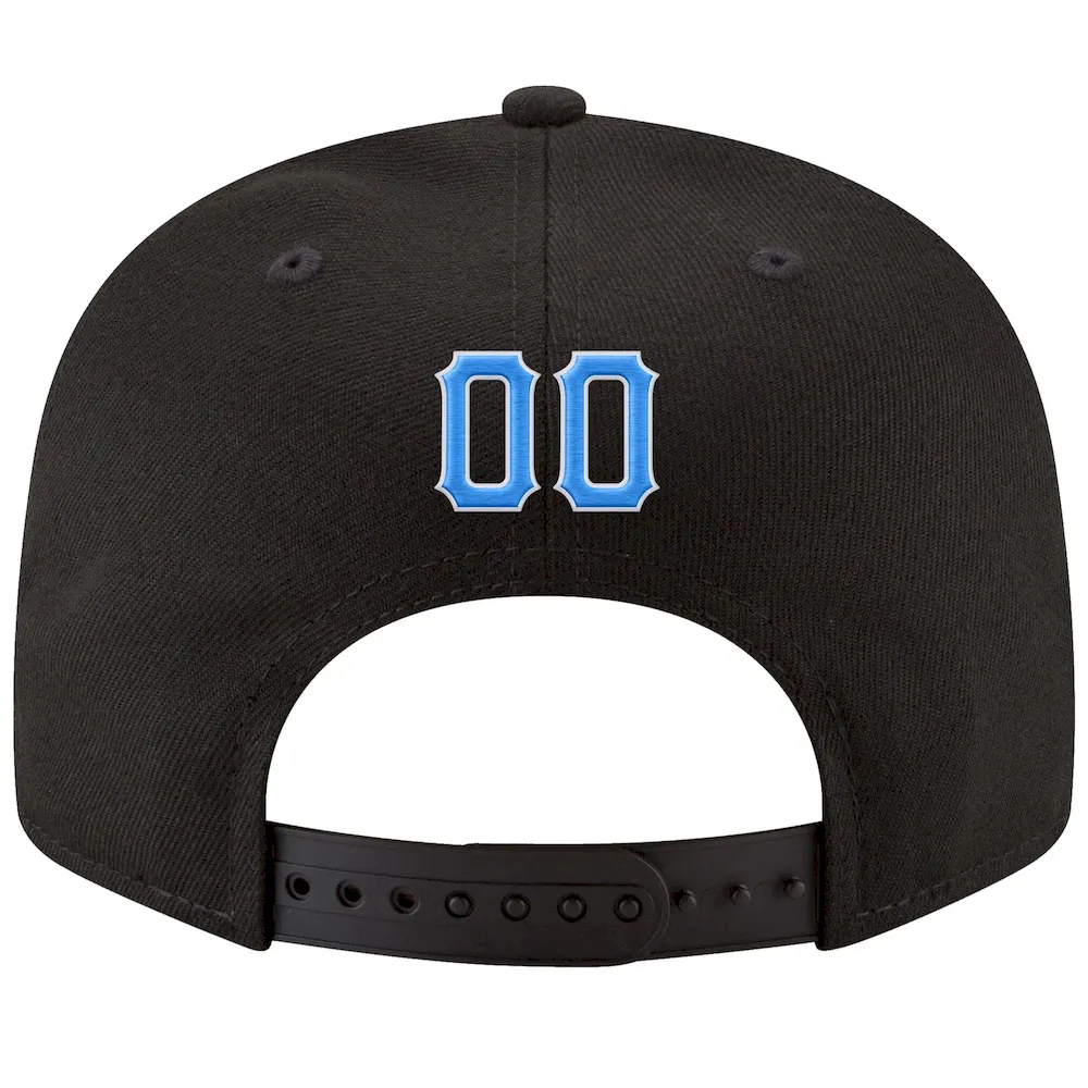 Custom Black Powder Blue-White Stitched Adjustable Snapback Hat