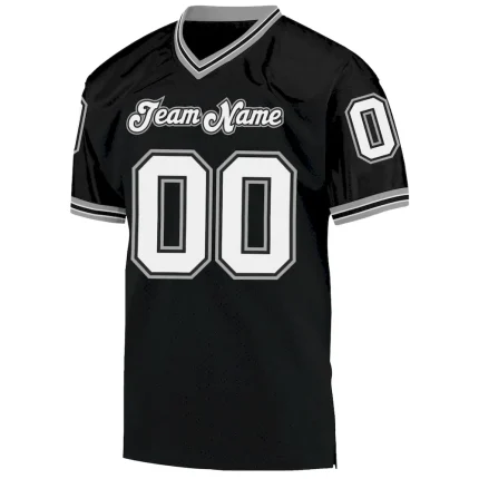 Custom Black White-Orange Mesh Authentic Throwback Football Jersey