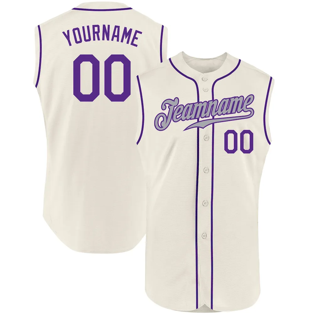 Custom Cream Purple-Gray Authentic Sleeveless Baseball Jersey